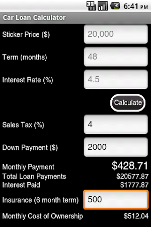 Auto loan calculator use this calculator to estimate your monthly car payment. 599069 total interest paid. While this auto loan calculator should be highly accurate and give you a solid idea about the costs of a proposed car loan it is not professional advise and should not be relied upon when making your final purchasing decision. Start with a list of vehicles that youre interested in and.